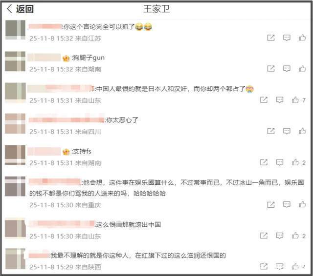 ——古二每发一次录音,王家卫评论区就沦陷一次,如今更是有网友开始留言让他滚出中国,呼吁封杀《繁花》剧组,要求白玉兰奖收回所有奖项,最好全剧下架!