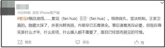 至于王家卫本人,更是一整个人设崩塌,本以为是才华横溢的文艺大导,实则是吃了红利、有了特权还高高在上瞧不起普通人的双面人。